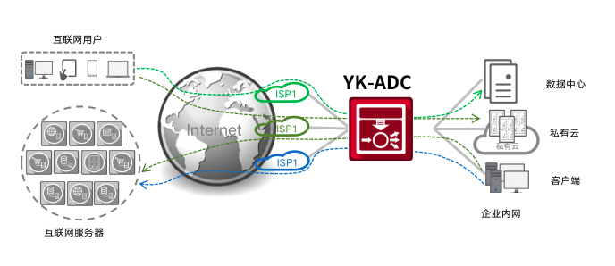 开云kaiyun通明湖应用交付控制器提供链路负载均衡技术(LLB)和全局负载均衡技术(GSLB)分别实现出向流量(Outbound)和入向流量(Inbound)的统一管理。